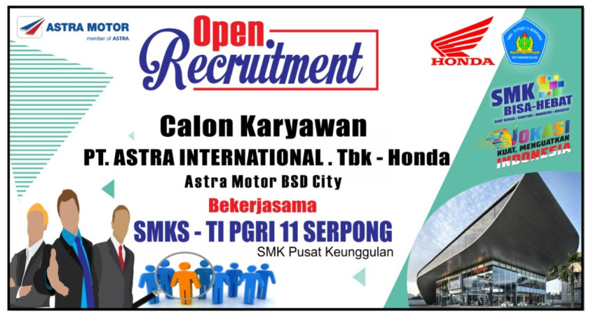 PT. Astra International. Tbk - Honda, Astra Motor BSD City. bekerjasama dengan SMKS - TI PGRI 11 Serpong untuk merekrut Calon Karyawan untuk posisi: