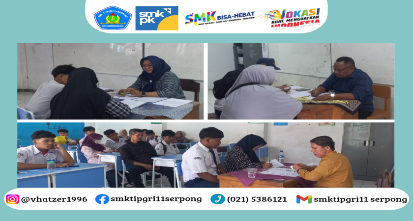 Serpong, 5 Juli 2025 — Suasana semangat kembali terasa di lingkungan SMKS TI PGRI 11 Serpong saat pelaksanaan wawancara hari kedua dalam rangkaian Seleksi Penerimaan Peserta Didik Baru (SPMB) Tahun Ajaran 2025/2026. Kali ini, giliran calon peserta didik dari jurusan Teknik Sepeda Motor (TSM) dan Teknik Kendaraan Ringan (TKR) yang mengikuti tahapan seleksi penting ini.